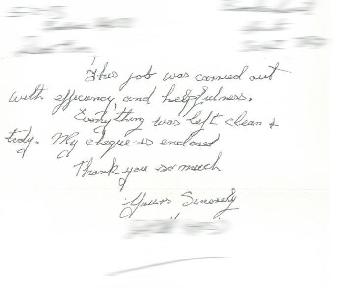 The job was carried out with efficiency, and helpfulness. Everything was left clean + tidy.